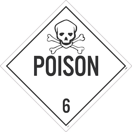 NMC DL8P National Marker Dot Placard Sign,Poison 6, 10 3/4 Inches x 10 3/4 Inches, Ps Vinyl