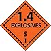 DOT Placards & Holders; Type: Placard ; Legend: 1.4 Explosives S ; Message or Graphic: Message & Graphic ; Material: Rigid Plastic ; Compliance Specifications: DOT 49 CFR 172 ; Placard Coating: Sign Muscle.