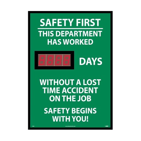 NMC DSB1 Safety First - This Department Has Worked ___ Days Without A Lost Time Accident Digital Scoreboard - 20 in. x 28 in. Plastic Safety Sign