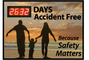 - Sign reads, "XXXX days accident free - Because safety matters"