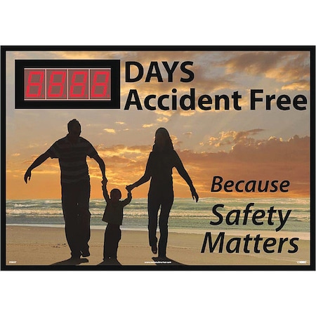 NMC DSB57 Digital Scoreboard, "XXXX Days Accident Free - Because Safety Matters," 28" Width X 20" Height, Rigid Plastic