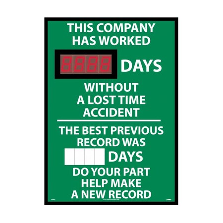 NMC DSB62 THIS COMPANY HAS WORKED ____ DAYS WITHOUT A LOST TIME ACCIDENT Digital Scoreboard - 20 in. x 28 in. Digital Safety Sign