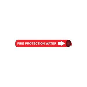 NMC E4043"Fire Protection Water" Precoiled Pipe Marker, Fits 4 5/8"-5 7/8" Pipe, White/Red