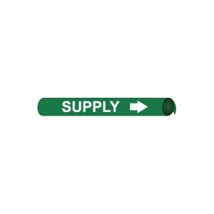 NMC E4103"Supply" Precoiled Pipe Marker, Fits 4 5/8"-5 7/8" Pipe, White/Green