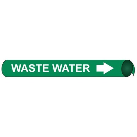 NMC E4112 "Waste Water" Precoiled Pipe Marker, Fits 4 5/8"-5 7/8" Pipe, White/Green