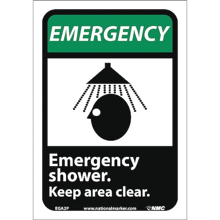 NMC EGA2P National Marker Emergency Shower Keep Area Clear Sign (with Graphic), 10 Inches x 7 Inches, Ps Vinyl