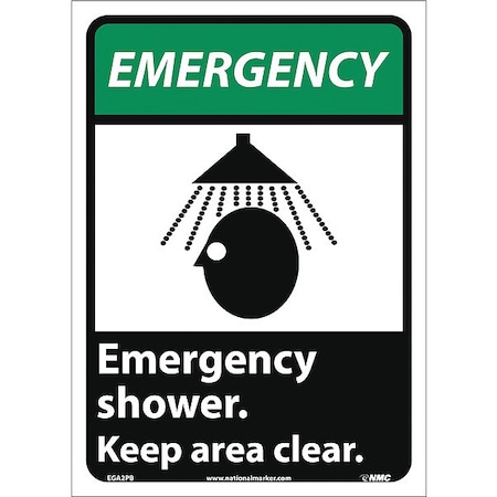 NMC EGA2PB National Marker Emergency Shower Keep Area Clear Sign (with Graphic), 14 Inches x 10 Inches, Ps Vinyl