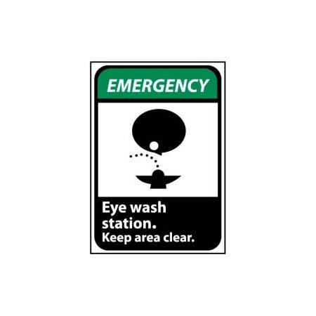 Emergency - Eye Wash Station - Keep Area Clear, 10" Wide x 14" High, Rigid Plastic Safety Sign