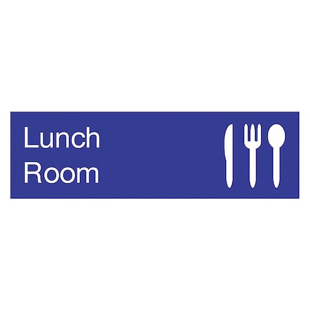 Lunch Room, 10 Inch Wide x 3 Inch High, Plastic SignRectangular, White on Blue, 0.05 Inch Thick, Indoor or Outdoor, Wall Mount with Mounting Fasteners, For Security and Admittance