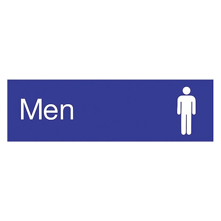 Men, 10 Inch Wide x 3 Inch High, Plastic SignRectangular, White on Blue, 0.05 Inch Thick, Indoor or Outdoor, Wall Mount with Mounting Fasteners, For Restroom, Janitorial and Housekeeping