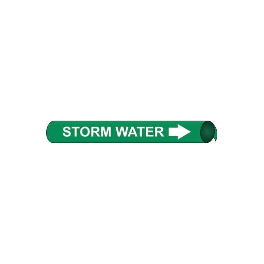 NMC F4120"Storm Water" Strap-On Pipe Marker, Fits 6"-8" Pipe, White/Green