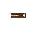 - Specification: the rectangular plastic sign is 10 in. wide and 3 in. high. It shows white text and Women graphic on a brown base
