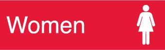- Visibility: the sign has the legend “Women” in clear, bold letters along with an easily understandable female figure graphic to ensure clear visibility and readability in most lighting conditions