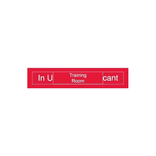 NMC - National Marker Company ENGRAVED, TRAINING ROOM IN USE/VACANT, 2X10, RED, 2PLY PLASTIC Engraved Identification Signs Convey information and create a consistant appearance throughout your facility by using engraved office signs. Features a low glare matte finish. All engraved identification signs are available with white text on your choice