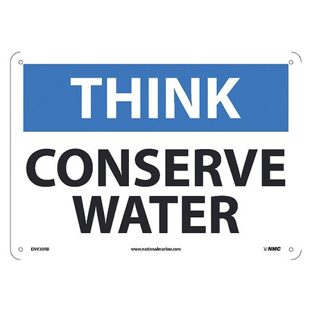 NMC ENV30RB National Marker Think, Conserve Water Sign, 10 Inches x 14 Inches Rigid Plastic