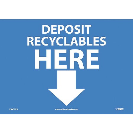 NMC ENV32PB National Marker Deposit Recyclables Sign Here (Arrow), 10 Inches x14, Ps Vinyl