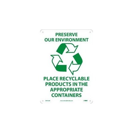 NMC ENV35RB National Marker Preserve Our Environment Sign (Graphic) Place Recyclable Products in The Appropriate Containers, 14 Inches x 10 Inches, Rigid Plastic