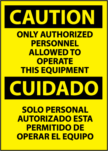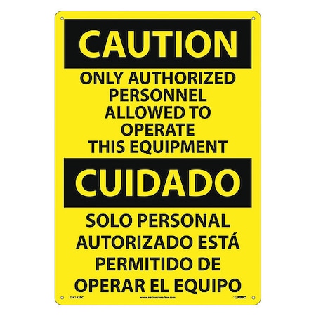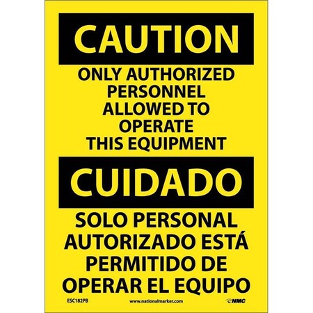 NMC ESC182RC Bilingual OSHA Sign, Legend "CAUTION - ONLY AUTHORIZED PERSONNEL ALLOWED TO OPERATE THIS EQUIPMENT", 14" Length x 20" Height, Rigid Plastic, Black on Yellow