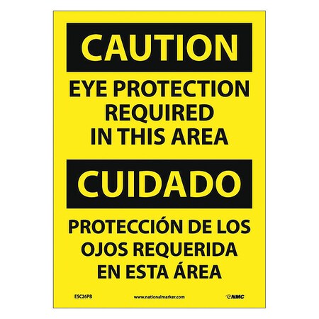 NMC ESC26PB Bilingual OSHA Sign, Legend "CAUTION - EYE PROTECTION REQUIRED IN THIS AREA", 10" Length x 14" Height, Pressure Sensitive Vinyl, Black On Yellow