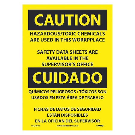 NMC ESC309PB National Marker Caution, Hazardous Toxic Chemicals are Use (Bilingual), 14 Inches x 10 Inches, Ps Vinyl