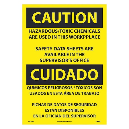 NMC ESC309PC National Marker Caution, Hazardous Toxic Chemicals are Use (Bilingual), 20 Inches x14, Ps Vinyl