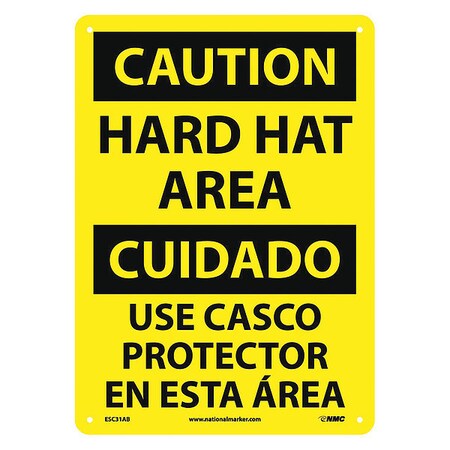 NMC ESC31AB Bilingual OSHA Sign, Legend "CAUTION - HARD HAT AREA", 10" Length x 14" Height, 0.040 Aluminum, Black On Yellow