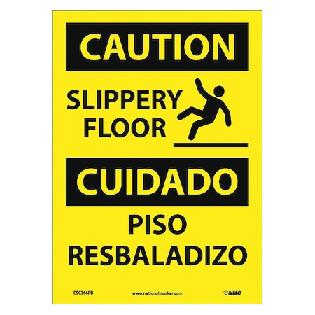 NMC ESC366PB Bilingual OSHA Sign, Legend "CAUTION - SLIPPERY FLOOR" with Graphic, 10" Length x 14" Height, Pressure Sensitive Vinyl, Black On Yellow