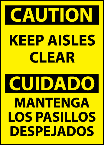 Caution Keep Aisles Clear Sign,Bilingual
