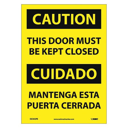 NMC ESC402PB Bilingual OSHA Sign, Legend "CAUTION - THIS DOOR MUST BE KEPT CLOSED", 10" Length x 14" Height, Pressure Sensitive Vinyl, Black On Yellow