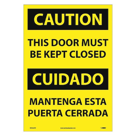 NMC ESC402PC Bilingual OSHA Sign, Legend "CAUTION - THIS DOOR MUST BE KEPT CLOSED", 14" Length x 20" Height, Pressure Sensitive Vinyl, Black On Yellow