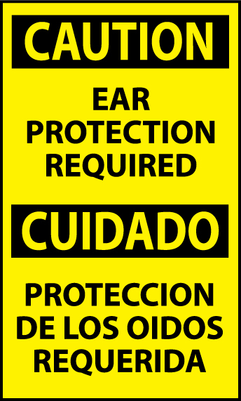 NMC - National Marker Company CAUTION, EAR PROTECTION REQUIRED BILINGUAL, 5X3, PS VINYL OSHA Signs OSHA signs are the perfect way to alert your employees and guests when a hazard is present in your facility. Keep your facility safe, buy an OSHA regulated sign today and prevent an accident tomorrow. These OSHA signs comply with OSHA 29 CFR 1910.145