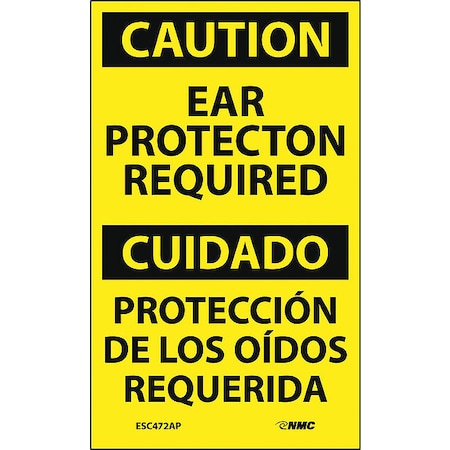 NMC ESC472AP Bilingual OSHA Sign, Legend "CAUTION - EAR PROTECTION REQUIRED", 3" Length x 5" Height, Pressure Sensitive Vinyl, Black On Yellow (Pack of 5)