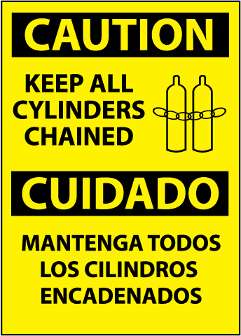 Caution Keep All Cylinders Chained Sign - Bilingual, ESC530AB