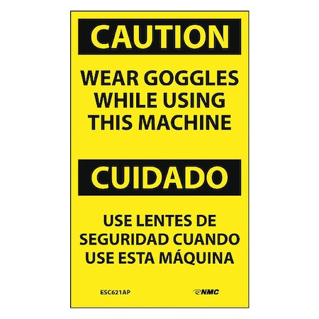 NMC ESC621AP Bilingual OSHA Sign, Legend "CAUTION - WEAR GOGGLES WHILE USING THIS MACHINE", 3" Length x 5" Height, Pressure Sensitive Vinyl, Black On Yellow (Pack of 5)