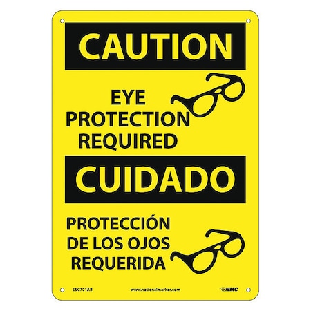 NMC ESC701AB Bilingual OSHA Sign, Legend "CAUTION - EYE PROTECTION REQUIRED" with Graphic, 10" Length x 14" Height, 0.040 Aluminum, Black On Yellow