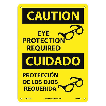 NMC ESC701RB Bilingual OSHA Sign, Legend "CAUTION - EYE PROTECTION REQUIRED" with Graphic, 10" Length x 14" Height, Rigid Plastic, Black On Yellow