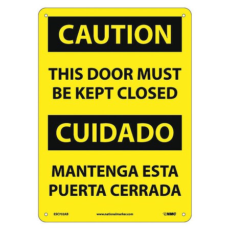 NMC ESC702AB Bilingual OSHA Sign, Legend "CAUTION - THIS DOOR MUST BE KEPT CLOSED", 10" Length x 14" Height, 0.040 Aluminum, Black On Yellow