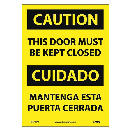 NMC ESC702PB Bilingual OSHA Sign, Legend "CAUTION - THIS DOOR MUST BE KEPT CLOSED", 10" Length x 14" Height, Pressure Sensitive Vinyl, Black On Yellow