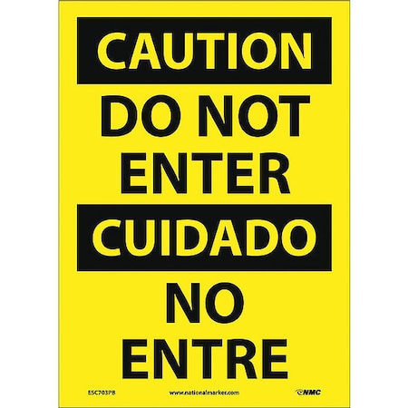 NMC ESC703PB Bilingual OSHA Sign, Legend "CAUTION - DO NOT ENTER", 10" Length x 14" Height, Pressure Sensitive Vinyl, Black On Yellow