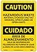 - Header "CAUTION" and Legend "HAZARDOUS WASTE MATERIAL STORAGE ONLY NO SMOKING, OPEN FLAMES OR OPEN LIGHTS"