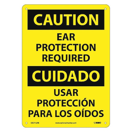 NMC ESC712RB Bilingual OSHA Sign, Legend "CAUTION - EAR PROTECTION REQUIRED", 10" Length x 14" Height, Rigid Plastic, Black On Yellow