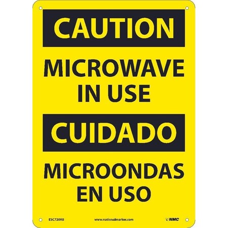 NMC ESC720AB Bilingual OSHA Sign, Legend "CAUTION - MICROWAVE IN USE", 10" Length x 14" Height, 0.040 Aluminum, Black On Yellow