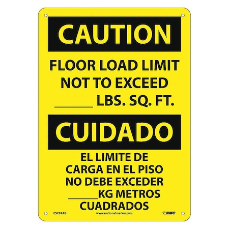 NMC ESC87AB Bilingual OSHA Sign, Legend "CAUTION - FLOOR LOAD LIMIT NOT TO EXCEED ___ LBS. SQ. FT.", 10" Length x 14" Height, 0.040 Aluminum, Black On Yellow
