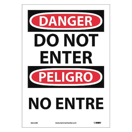 NMC ESD104PB Bilingual OSHA Sign, Legend "DANGER - DO NOT ENTER", 10" Length x 14" Height, Pressure Sensitive Vinyl, Black/Red on White