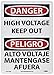 - Header "DANGER" and Legend "HIGH VOLTAGE KEEP OUT"