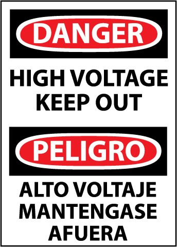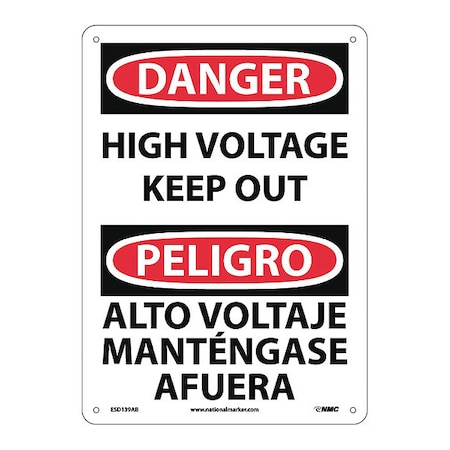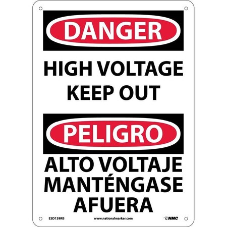 NMC ESD139AB Bilingual OSHA Sign, Legend "DANGER - HIGH VOLTAGE KEEP OUT", 10" Length x 14" Height, 0.040 Aluminum, Black/Red on White