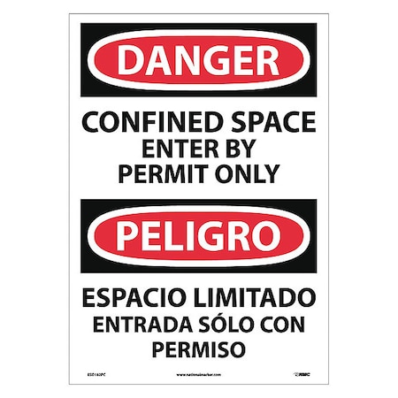 NMC ESD162PC Bilingual OSHA Sign, Legend "DANGER - CONFINED SPACE ENTER BY PERMIT ONLY", 14" Length x 20" Height, Pressure Sensitive Vinyl, Black/Red on White