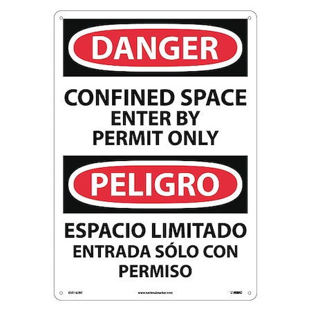 NMC ESD162RC Bilingual OSHA Sign, Legend "DANGER - CONFINED SPACE ENTER BY PERMIT ONLY", 14" Length x 20" Height, Rigid Plastic, Black/Red on White