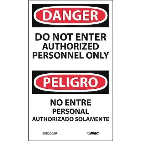 NMC ESD200AP Bilingual OSHA Sign, Legend "DANGER - DO NOT ENTER AUTHORIZED PERSONNEL ONLY", 3" Length x 5" Height, Pressure Sensitive Vinyl, Black/Red on White (Pack of 5)