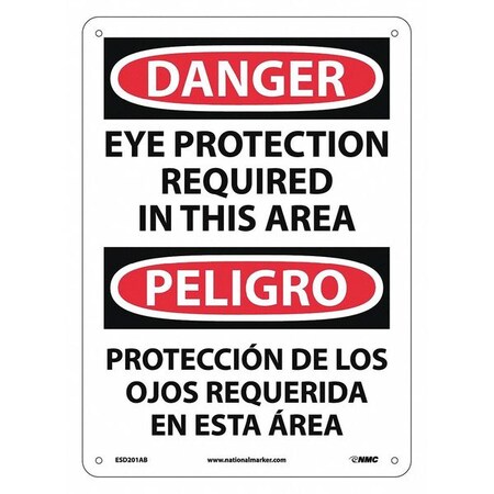NMC ESD201AB Bilingual OSHA Sign, Legend "DANGER - EYE PROTECTION REQUIRED IN THIS AREA", 10" Length x 14" Height, 0.040 Aluminum, Black/Red on White
